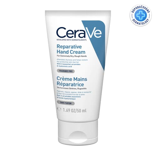 CeraVe repairing hand cream relieves dryness and helps restore the protective skin barrier. It contains three types of essential ceramides and hyaluronic acid, making it ideal for extremely dry and rough hands. It protects skin from daily irritation, is fragrance-free, and water-resistant. This pack contains 50 ml.