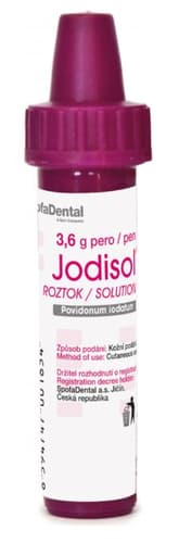 Jodisol roztok je vysoce účinný dezinfekční přípravek. Je to tříprocentní lihový roztok komplexní sloučeniny (jodofor) s možností širokého použití. Má velký rozsah účinku na množící se formy mikroorganismů t.j. bakterie, plísně i na viry. Jod vázaný v komplexu se uvolňuje v koncentraci, která postačuje k dezinfekci, ale nepoškozuje kůži ani sliznici. Plné působení nastupuje za 1 - 5 minut po použití. Balení obsahuje 3,6 g.