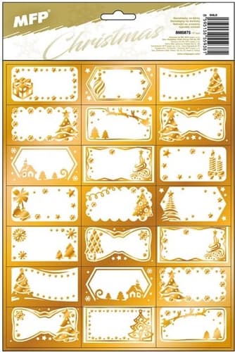 Samolepící zlaté jmenovky se zářivými vánočními motivy skvěle doplní každý dárek.
