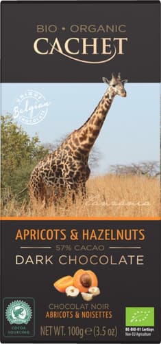 Cachet BIO apricots & hazelnuts 57 % Cacao Dark Chocolate