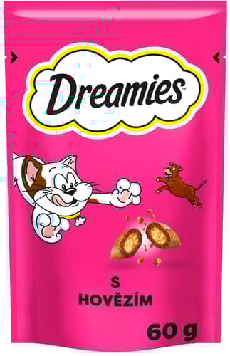 Křupavé na povrchu a jemné uvnitř – hovězí pamlsky Dreamies jsou oblíbenou odměnou, které kočky neodolají.