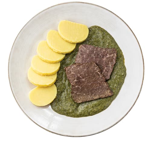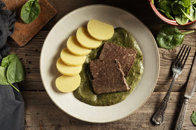 Rohlik.cz Beef on garlic with spinach and dumplings