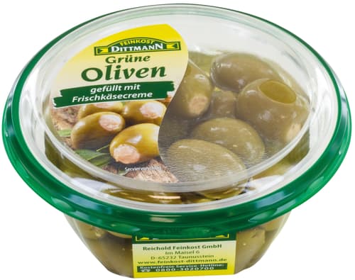 Feinkost Dittmann Olivy zelené plněné čerstvým sýrem nakládané v oleji