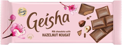 Indulge in the delightful Geisha milk chocolate bar from Finland! This 100g bar features a luscious hazelnut and nougat filling that simply melts in your mouth. What's more, all Geisha chocolates are made with 100% responsibly sourced cocoa, so you can enjoy every bite with a clear conscience. It's the perfect treat for a moment of pure bliss.