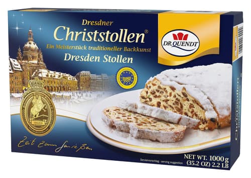 Drážďanské vánoční štoly jsou považovány za saskou specialitu. Originální Dresdnen Christstollen je upečená podle starých osvědčených receptů v nejvyšší kvalitě, navíc je nabízena v krásné dárkové krabičce. Jedná se o produkt s chráněným zeměpisným označením. Zlatá pečeť Dresden Stollen Protection Association pak potvrzuje pravost.