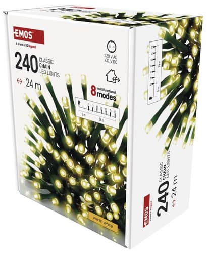 Emos LED Christmas chain with timer, warm white, length 24 m