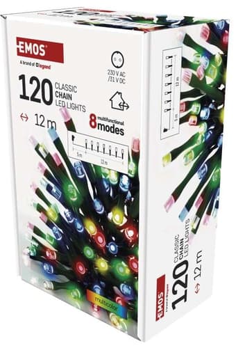 Emos LED Christmas chain with timer, multicolor, length 12 m