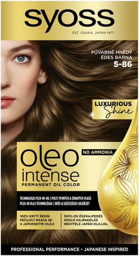 Barva na vlasy Syoss Oleo Intense v půvabně hnědém odstínu pro olejem posílené dlouhotrvající barvení bez amoniaku a pocit silných a zdravých vlasů. Pečující receptura pomáhá barevným pigmentům proniknout hluboko do vlasových vláken pro sytou, dlouhotrvající barvu a 100% krytí šedin.