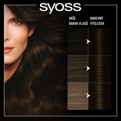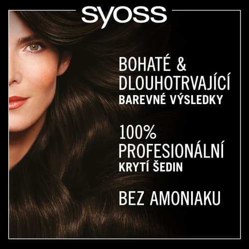 Barva na vlasy Syoss Oleo Intense v černohnědém odstínu pro olejem posílené dlouhotrvající barvení bez amoniaku a pocit silných a zdravých vlasů. Pečující receptura pomáhá barevným pigmentům proniknout hluboko do vlasových vláken pro sytou, dlouhotrvající barvu a 100% krytí šedin.
