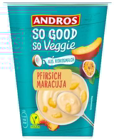 Andros So Good So Veggie Veganský dezert s broskví a mučenkou z kokosového nápoje
