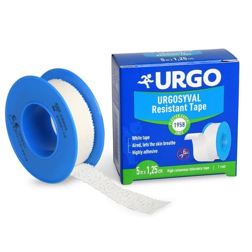 Urgo SYVAL Textile Patch is an essential aid for any first-aid kit. This white, cushion-free patch is perfect for securely fixing gauze, catheters, probes, and drains. Designed for sensitive skin, it's breathable and boasts high skin tolerance. Plus, you can easily tear it without needing scissors! The pack contains one roll measuring 1.25 cm x 5 m, making it a convenient and reliable choice.