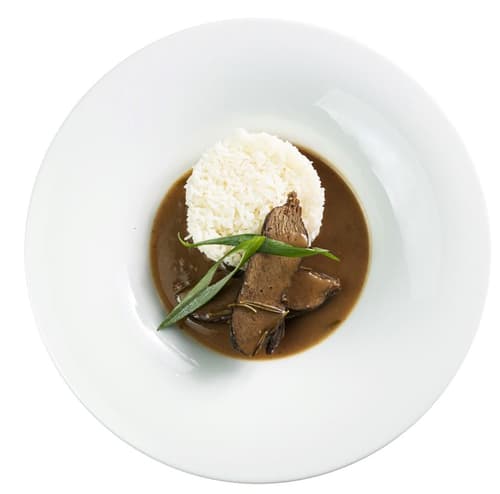 Hovězí na rozmarýnu a červeném víně s jasmínovou rýží z restaurace Chateau St. Havel