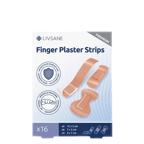 Zdravotnický prostředek. LIVSANE Náplasti na prsty jsou vhodné pro krytí všech typů menších ran na prstech. Antiseptická gáza (chlorhexidin diglukonát) zabraňuje a bojuje proti infekcím tím, že kontroluje mikroprostředí rány, zatímco nepřilnavý polštářek na ránu chrání a tlumí ránu a silná adheze zajišťuje, že náplast zůstane na svém místě. Rozměry náplastí: 6x 12,0 x 2,0 cm, 6x 7,0 x 2,0 cm, 4x 4,0 x 7,0 cm. Balení obsahuje 16 ks.