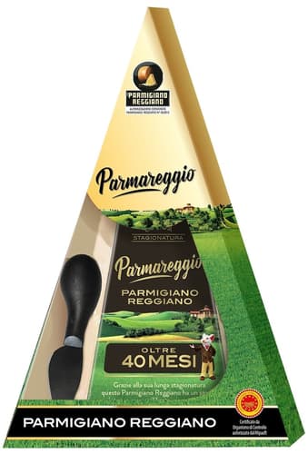 Italský sýr Parmigiano-Reggiano s charakteristickou intenzivní a jemně ostrou chutí, který zraje 40 měsíců. Parmigiano je sýr původem z Itálie, který je vyráběný z čerstvého a částečně odtučněného kravského mléka. Je charakteristický svou nasládlou chutí a vůní s tóny bylin a ovoce, která je s pokračujícím zráním výraznější. Kůrka je hladká a má světle slámovou barvu a uvnitř zrnitou strukturu, která je drobivá.