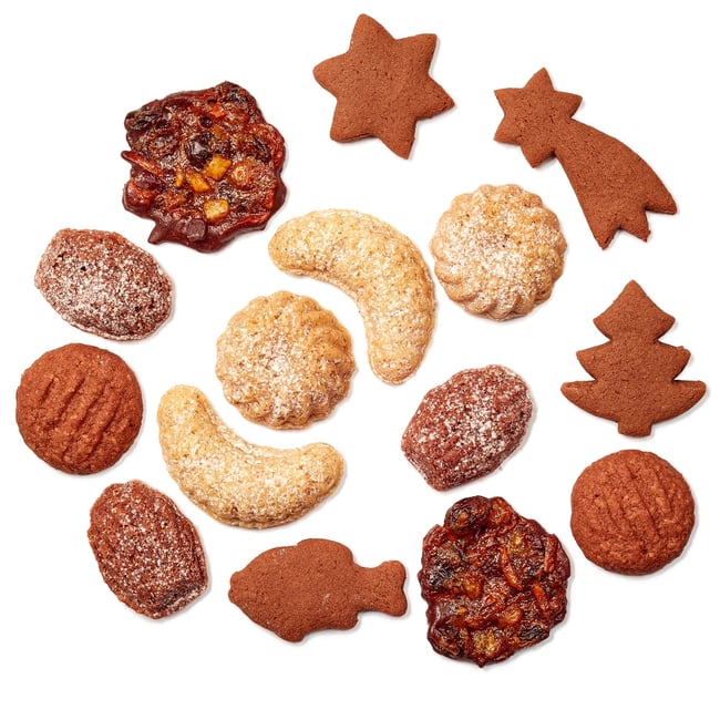 V krabičce najdete šest druhů rohlíčků, perníčků a cukroví: