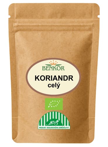 Koriandr v BIO kvalitě značky Benkor je koření nasládlé pikantní chuti s dobře znatelným náznakem pomerančové kůry.