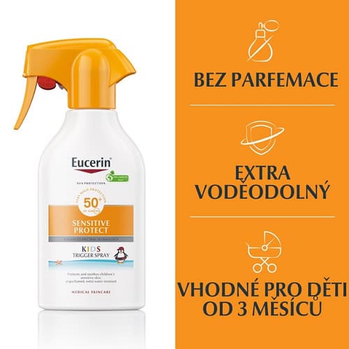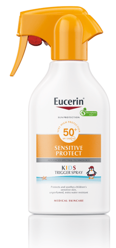 Eucerin Dětský sprej na opalování Sensitive protect s velmi vysokou ochranou 50+ je přípravek na opalování pro děti vyvinutý speciálně pro zklidnění a ochranu citlivé dětské pokožky před spálením, který snižuje riziko dlouhodobého poškození pokožky vlivem slunečního záření. Je také vhodný pro atopickou pokožku. Technologie Advanced Spectral Technology kombinuje širokospektrální a fotostabilní UVA/UVB filtry* poskytující velmi vysoký stupeň ochrany před UV zářením s licochalconem A pro neutralizaci volných radikálů vyvolaných UV zářením a vysokoenergetickým viditelným světlem. Obsahuje také kyselinu glycyrrhetinovou, která podporuje vlastní mechanismus pokožky na obnovu DNA. Bez parfemace, extra voděodolný, obsahuje technologii značky Eucerin "Proti skvrnám po vyprání"**. V praktickém spreji s pumpičkou pro snadnou aplikaci. Klinické i dermatologické testy prokázaly, že je vhodný pro citlivou dětskou pokožku, včetně pokožky s atopickou dermatitidou. ** Skvrny od opalovacích přípravků jsou po vyprání méně viditelné. *Odpovídají přísným standardům kladeným na ochranu před UVA a UVB zářením asociací Cosmetics Europe. Úroveň ochrany před UVA zářením je vyšší než je požadováno dle EU norem. Pro kojence od 3. měsíce věku života. Balení obsahuje 250 ml.