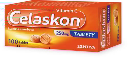 Kontraindikace: Pečlivě čtěte příbalovou informaci. Neužívejte přípravek Celaskon tablety 250 mg, jestliže jste alergický(á) na kyselinu askorbovou (vitamín C) nebo na kteroukoli další složku tohoto přípravku. O užívání přípravku v těhotenství a v období kojení se vždy předem poraďte s lékařem. V období těhotenství a kojení je zvýšená potřeba vitamínu C, proto mohou těhotné a kojící ženy přípravek s vitamíny Celaskon 250 mg tablety přechodně užívat, obvykle jednu tabletu denně.