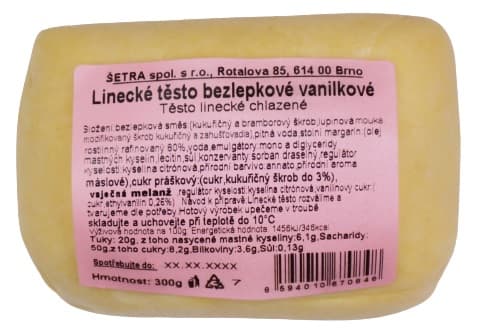 bezlepková směs ( kukuřičný a bramborový škrob , lupinová mouka , modifikovaný škrob kukuřičný a maniokový , dextroza , zahušťovadlo guma guar , emulgátor sojový lecitin , kyselina askorbová a citronová , může obsahovat stopy sezamu a oxidu siřičitého ) pitná voda , stolní margarín ( rostlinný rafinovaný olej 80% , voda , emulgátory mono a diglyceridy mastných kyselin , lecitin , sůl , konzervanty , přírodní máslové aroma ) cukr práškový ( cukr kukuřičný m škrob do 3% ) , vaječná melanž , regulátor kyselosti kyselina citronová , vanilkový cukr ( cukr , ethylvanilin 0,26% )