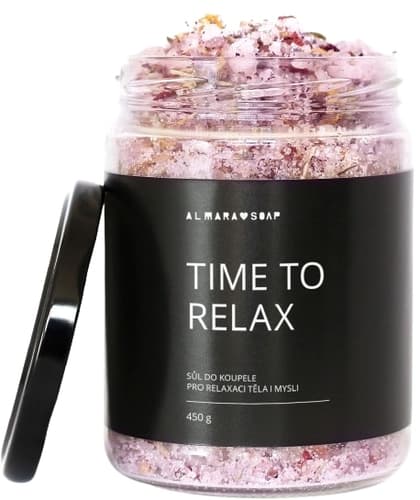 Sůl do koupele Time to Relax je určená k uvolnění těla a zklidnění mysli po náročném dni. Obsahuje na minerály bohatou epsomskou sůl, která je proslulá svými zklidňujícími účinky a pomáhá k celkovému uvolnění. Dále také mořskou sůl, hrubou himálajskou sůl a směs bylinek – slézu, měsíčku, levandule a růže, které vodu přírodně obarví do modra.