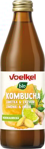 Voelkel kombucha s příchutí limetky a zázvoru v BIO kvalitě je fermentovaný nealkoholický nápoj s probiotickou kulturou. Za použití prémiového sypaného černého a zeleného čaje a kvasného procesu vzniká kombinace silného čajového nálevu a sladko-kyselé chuti fermentace.