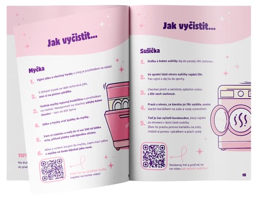 Manuál plný tipů a rad, jak používat osvědčené a šetrné čisticí prostředky pro úklid. Je ve formě knížečky, kterou můžete mít stále při ruce. Stačí nalistovat tu část, kterou chcete zrovna uklízet, a řídit se radami z manuálu.