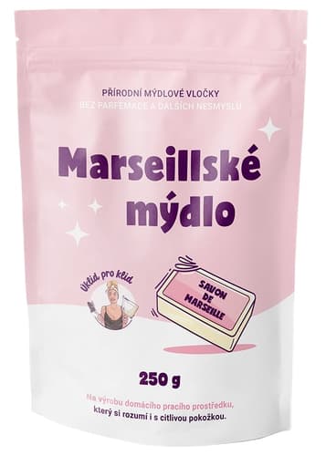 Zcela přírodní, marseillské mýdlo ve formě praktických vloček. Během chvilky s ním připravíte prací prášek na barevné, černé i bílé prádlo. Má pořádnou sílu, a tak vypere i skvrny od trávy nebo ovoce. Zvládne to navíc už při nízkých teplotách. K látkám je velmi něžný, a tak s ním můžete prát i jemné tkaniny jako hedvábí, vlnu, krajku a taky oblečky nebo plenky pro miminko. Je hypoalergenní a jemný i k té nejcitlivější pokožce. Neobsahuje žádné konzervanty, barviva, aromata ani živočišný tuk.