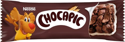 Snídaňová cereální tyčinka s chutí čokolády, polomáčená v bílé polevě s mlékem, s vitamíny a minerálními látkami. Oblíbené snídaňové cereálie Chocapic jsou k dispozici i v pohodlném balení – ve formě tyčinky.