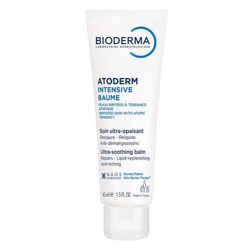 Krém Bioderma Atoderm Intensive Baume zmírňuje svědění citlivé a podrážděné pokožky a zklidňuje pokožku s atopickým ekzémem. Obnovuje přirozenou rovnováhu pokožky, a tím zabraňuje jejímu podráždění. Krém pokožku regeneruje, posiluje ji a dodává jí pružnost. Zklidňující krém Bioderma Atoderm Intensive Baume snižuje nutkání škrábat se, zvláčňuje pokožku a brání jejímu vysoušení. Je vhodným doplňkem k medikamentózní léčbě. Krém používejte každý den jak v období klidu, tak i ve fázi vzplanutí. Při pravidelném používání dochází k prodloužení klidové fáze a tím ke zlepšení kvality života. Nelepivá, nemastná textura, okamžité vstřebávání, neparfemovaný. Suchost může být důsledkem genetické dispozice a stejně tak přitěžujících faktorů, jako je voda, použití nevhodných produktů péče o pokožku, chlad, střídání teplot a znečištění. Suchost se projevuje oslabenou kožní bariérou a množením bakterií, které způsobují podráždění, a dokonce sekundární infekci. Jak funguje Atoderm Intensive baume? Unikátní komplex Lipigenium™, složený z biolipidů, které se nachází v epidermis, kde dlouhodobě obnovují kožní bariéru biologickou stimulací syntézy lipidů a proteinů, jež vytváří spojení mezi korneocyty. Dermatologická PEA látka proti svědění rychle zajistí úlevu a redukuje nucení ke škrábání. Exkluzivní patent Skin barrier therapy™ brání přilnutí bakterií, které způsobují dráždění i na té nejsušší pokožce. Typ pokožky: Atopická. Indikace: Atopická pokožka. Pro denní použití. Dospělí, děti, kojenci. Balení obsahuje 45 ml.