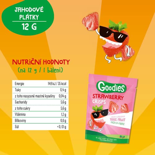 Goodies Mrazem sušené jahodové plátky12 gThis product is no longer available.Country: according to the current offerplease contact customer support for the exact information