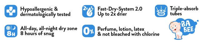 Představte si plenku, která je jako objetí! Super měkká, prodyšná vnitřní vrstva vyrobená z udržitelně získávané celulózy hýčká jemnou pokožku vašeho dítěte. Vzdušná vnější vrstva umožňuje přirozené proudění vzduchu a udržuje vaše dítě v pohodě po celý den. Navíc má perfektní střih s pružnými stranami, čímž zajišťuje svobodu pohybu pro všechna chechtání a chichotání.