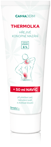 Cannaderm Thermolka is a warming hemp ointment with capsaicin for massaging strained backs, muscles, and stiff joints, also great for warming up before sports, in a 250ml pack.