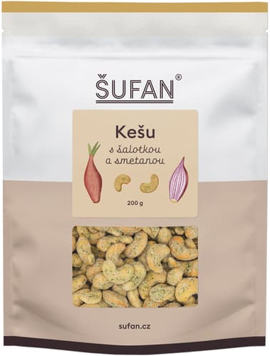 Lahodná kombinace křupavých kešu ořechů, sušené zakysané smetany a jemně nasládlé šalotky. V každém soustu se sladkost kešu setkává s lehkou kyselostí zakysané smetany a aroma šalotky.