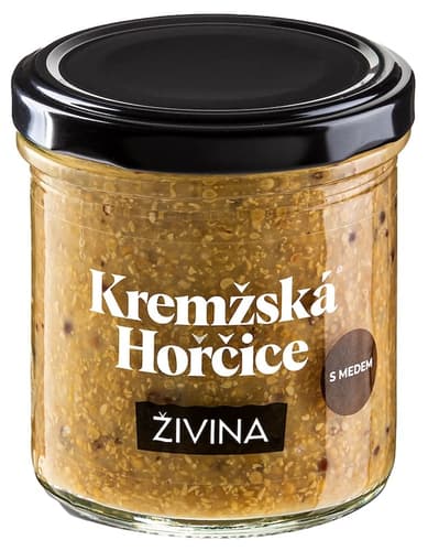 Kremžská hořčice s medem, pasterováno. Obsahuje vitamíny B a C, minerály jako vápník nebo hořčík, vlákninu a flavonoidy. Výslednou chuť hořčice nejvíce ovlivňuje ocet, který spolu s medem vytváří harmonickou kombinaci sladkosti, kyselosti a pikantnosti. Kremžská hořčice přijde vhod každému, kdo dává přednost ostrému jídlu.
