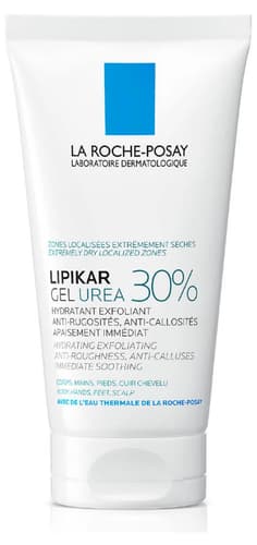LA ROCHE-POSAY LIPIKAR 30% Urea gel offers intensive hydrating and exfoliating care, specifically formulated for extremely dry, rough, and calloused skin. Enriched with 30% urea and niacinamide, it provides immediate soothing and visibly smooths the skin, boosting hydration for up to 48 hours. This versatile gel is suitable for your body, hands, feet, and even scalp. It's dermatologically tested on sensitive skin. Comes in a 50 ml tube.