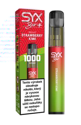 SYX Bar Strawberry Kiwi je stylová a kompaktní jednorázová elektronická cigareta, která přináší intenzivní a svěží chuť. Jednorázová e-cigareta SYX Bar je naplněna e-liquidem garantujícím bezproblémový vaping.