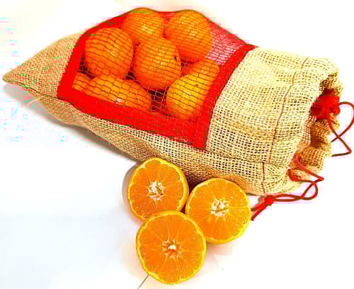 Šťavnaté mandarinky odrůdy Clementine v jutovém pytli.