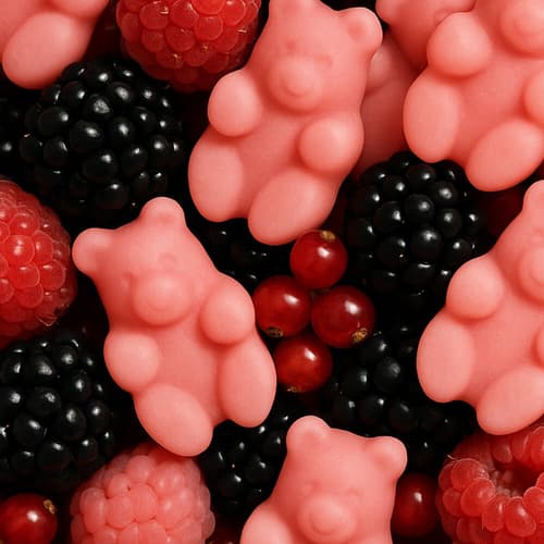 Glukózový sirup, cukr, voda, hořečnaté soli kyseliny citronové, želatina, kyselina L-askorbová, hydrolyzovaný hovězí kolagen, maltodextrin, kyselina citronová (E 330), citrát zinku, DL-α tokoferyl acetát 500, hyaluronát sodný, barvivo: antokyany (E-163), přírodní aroma, rostlinný olej (kokosový), D-biotin, retinyl acetát 325 000 IU, cholekalciferol 100, pyridoxin HCL, lešticí prostředek: karnaubský vosk (E 903), kyanokobalamin 1%, kyselina pteroylglutamová, selenan sodný, cholin bitartrát, inositol. Obsah aktivních látek ve 2 gumových bonbonech: Vitamin A: 300 µg (38 % RHP), vitamin D: 5 µg (100 % RHP), vitamin E: 6 mg (50 % RHP), vitamin C: 60 mg (75 % RHP), vitamin B6: 1,5 mg (107 % RHP), vitamin B7 (D-biotin): 5 000 µg (10 000 % RHP), kyselina listová (vitamin B9): 200 µg (100 % RHP), vitamin B12: 3 µg (120 % RHP), zinek: 10 mg (100 % RHP), selen: 55 µg (100 % RHP), hořčík: 56,25 mg (15 % RHP), cholin: 0,04 mg (není stanoveno*), inositol: 0,04 mg (není stanoveno*), hyaluronan sodný 95%: 20 mg (není stanoveno*), hydrolyzovaný hovězí kolagen: 100 mg (není stanoveno*). RHP - referenční hodnota příjmu.