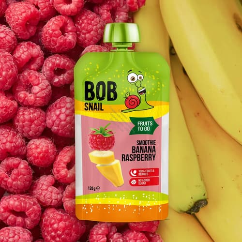 Ovocné smoothie s banánem a divokými malinami přináší krémovou konzistenci a přirozenou sladkost bez přidaného cukru. Praktický sáček umožňuje snadnou konzumaci kdykoliv během dne.