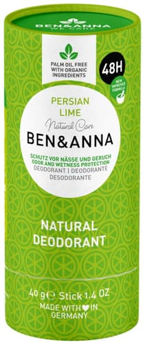 Tuhý ekologický deodorant, který vás příjemně překvapí svou svěží vůní po limetkách s jemným nádechem citronové trávy. Krémové deodoranty Ben & Anna na bázi jedlé sody a bambuckého másla jsou přírodní, 100% veganské, netestované na zvířatech a zcela bez plastů – jsou totiž zabalené v recyklovatelné papírové tubě (s FSC certifikací). Neobsahují hliníkové soli, parabeny, chemické stabilizátory, PEGy, ftaláty nebo lepek.
