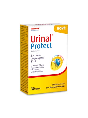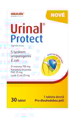 Doplněk stravy. Urinal Protect obsahuje kombinaci tří látek - extraktu z kanadských brusinek, monosacharidu D-manosy a lyzátu uropatogenní bakterie Escherichia coli. Kanadské brusinky - kvalitní koncentrovaný extrakt z kanadských brusinek zajištuje příjem 25 mg proanthokyanidinů (PAC) v 1 tabletě. Brusinky jsou zdrojem bioflavonoidů, anthokyaninů a proanthokyanidinů. Po požití se tyto látky snadno vstřebávají do krevního oběhu. Z krve jsou následně filtrovány do moči, která vyplachuje močové cesty. D-manosa - monosacharid, přirozeně se vyskytující v lidském těle. Najdete ho také v některých druzích ovoce jako např. v pomerančích, jablkách, broskvích, brusinkách, borůvkách nebo černém rybízu. D-manosa se, stejně jako brusinky, po požití vstřebává do krve a následně přes ledviny do moči, jenž vyplachuje močový mechýř a močové cesty. Nepřekračujte doporučené denní dávkování. Uchovávejte mimo dosah dětí. Doplňky stravy nejsou náhradou pestré a vyvážené stravy. Balení obsahuje 30 tablet. Hmotnost obsahu: 37 g.