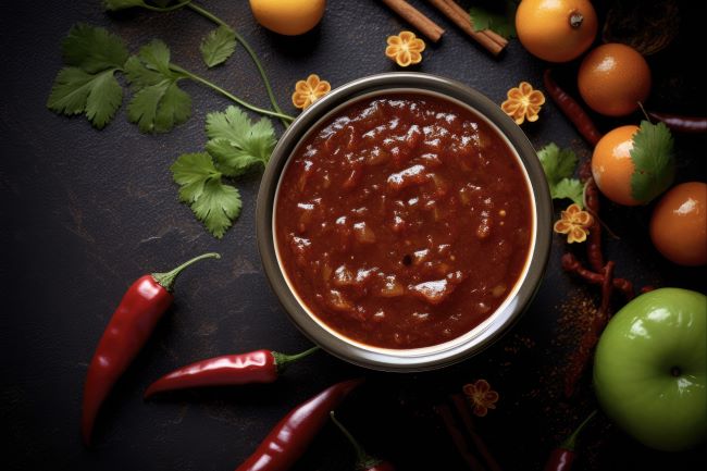 voda, cukr, tamarindová pasta (21 %), rajčatový koncentrát, modifikovaný škrob, sůl, mletý kmín, mleté chilli, černý pepř, kyselina: kyselina octová, konzervant (sorban draselný), fenyklové semínko, sladidlo (sukralóza).