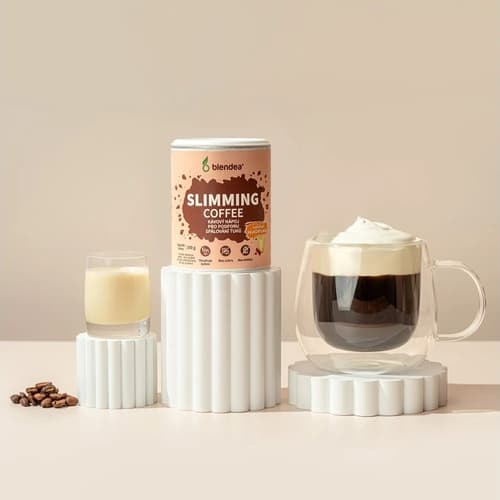 Doplněk stravy. Blendea Slimming Coffee s příchutí vaječného likéru je doplněk stravy ve formě nápoje s obsahem instantní kávy, extraktu zelené kávy a matchy. Vlastnosti produktu: S příchutí vaječného likéru. 1 porce obsahuje cca 56 mg kofeinu. Neobsahuje laktózu, lepek ani aditiva. Kofein pomáhá zvýšit čilost a zlepšit soustředění. Nepřekračujte doporučené denní dávkování. Uchovávejte mimo dosah dětí. Doplňky stravy nejsou náhradou pestré a vyvážené stravy. Balení obsahuje 100 g.