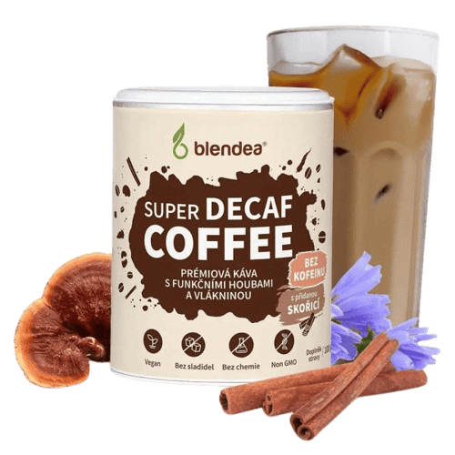 Doplněk stravy. Supercoffee Decaf Bez kofeinu je adaptogenní instantní káva, která je ideální volbou pro všechny, kdo si chtějí vychutnat chuť kávy bez účinků kofeinu. Díky šetrnému zpracování si i bezkofeinová verze zachovala plnou, intenzivní chuť a příjemné aroma, a to i díky špetce cejlonské skořice, která nápoj chuťově obohacuje. Tento produkt je vhodný k pití i ve večerních hodinách a neobsahuje lepek, cukr, laktózu ani žádné chemické přísady. Základem Supercoffee Decaf je kvalitní káva zbavená kofeinu, obohacená o funkční houby v BIO kvalitě. Obsahuje reishi, chagu a hericium – houby s tisíciletou tradicí v čínské medicíně. Reishi přispívá k přirozené obranyschopnosti organismu, podporuje imunitní systém a napomáhá udržení normální hladiny cholesterolu i zdravé funkce oběhové soustavy. Kromě hub obsahuje Supercoffee i kořen čekanky bohatý na inulin, který působí jako prebiotikum (tzn. je zdrojem živin pro mikroflóru tlustého střeva). Kořen čekanky přispívá také k normální činnosti srdce, cév, kloubů a kostí. Nepřekračujte doporučené denní dávkování. Uchovávejte mimo dosah dětí. Doplňky stravy nejsou náhradou pestré a vyvážené stravy. Balení obsahuje 100 g.