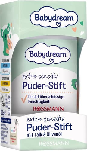 Extra Sensitive pudr v tyčince spolehlivě pohlcuje vlhkost a chrání citlivou dětskou pokožku před podrážděním. Praktická forma v tyčince usnadňuje aplikaci. Vhodný od narození, obsahuje talc a olivový olej. Dermatologicky testováno.