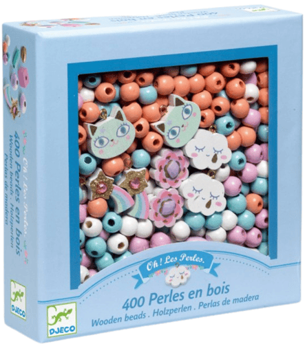 Set of 400 pieces of various types of wooden beads. For all original fashionistas from 6 years old. With this set, you have the freedom to create. Package size: 15 x 15 x 4 cm.