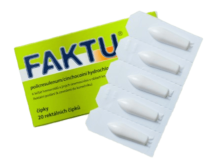 Léčivou látkou přípravku Faktu čípky je polykresulen a cinchokain. Přípravek Faktu rychle zastavuje krvácení, svědění a pálení při hemoroidech a dalších obtížích v oblasti konečníku. Zabraňuje vzniku zánětu a podporuje regeneraci postižené oblasti. Cinchokain způsobuje místní znecitlivění, čímž snižuje bolest a svědění v oblasti konečníku. Faktu se používá k místní léčbě hemoroidů. Čípky se používají k léčbě vnitřních hemoroidů, obzvláště jsou-li doprovázeny zánětem a krvácením. Přípravek Faktu se dále používá při vyrážkách a svědění v oblasti konečníku a u povrchních trhlin v oblasti řitního otvoru. Pouze na doporučení lékaře se přípravek Faktu používá při léčbě ran po předchozím chirurgickém zákroku v oblasti konečníku. Přípravek je určen pro dospělé. Balení obsahuje 20 čípků.