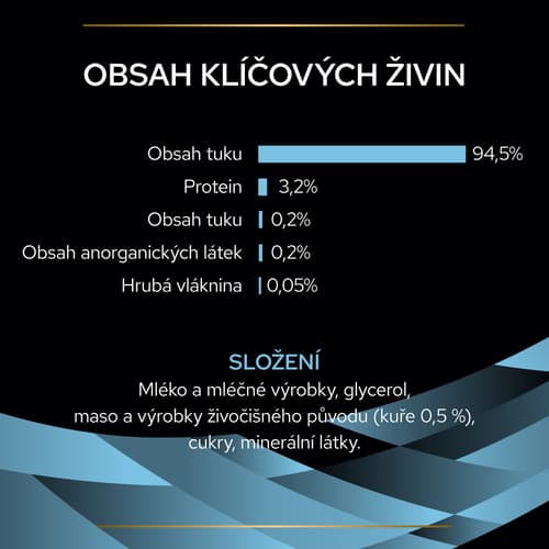 mléko a mléčné výrobky, glycerol, maso a výrobky živočišného původu (kuře 0,5 %), cukry, minerální látky.