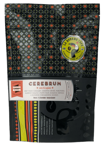 Cerebrum je silná a povzbuzující směs, která spojuje hutné tóny hořké čokolády, pražených oříšků a dotek sladké smetany. Tato směs byla navržena pro ty, kteří si potrpí na výrazné espresso nebo intenzivní cappuccino. Nabízí krémovou strukturu, plné tělo a dlouhou dochuť, která povzbudí mysl i smysly. Kombinace káv z Brazílie, El Salvador a indické robusty Cherry vytváří harmonii sladkosti, síly a jemné hořkosti.