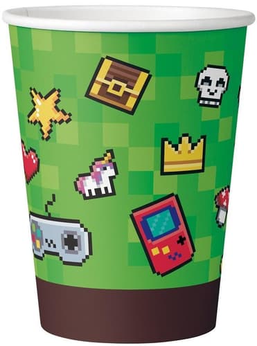 Papírové kelímky s objemem 200 ml jsou ideální na studené i horké nápoje. Díky barevnému pixelovému designu potěší každého fanouška oblíbené hry Minecraft. Kelímky jsou jednorázové, lehké a praktické na úklid po akci. Rozměr kelímku 7 × 12 cm.